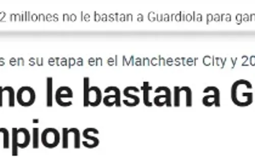 Es por eso que se le pide tanto al ahora director técnico de ManchesterCity, quien no logra meterse en una final de Champions League hace más de 8 años.