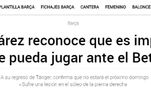 Cabe destacar que Suárez padece una lesión en el sóleo de la pierna derecha que podría dejarlo fuera de competencia hasta septiembre.
