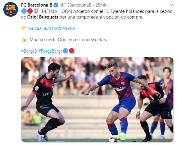 Finalmente, este martes se confirmó que Oriol Busquets jugará cedido en el Twente, de la Eredivisie holandesa.