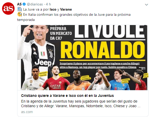 Sí es cierto que en Juventus ya están preparándose para volver a intentar conquistar Europa la próxima temporada y en ese plan de refuerzos entran dos futbolistas que ya fueron compañeros de Cristiano en Real Madrid.