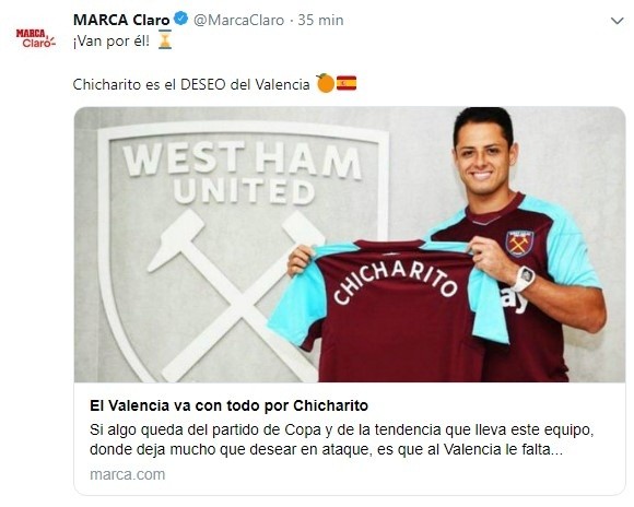 Según avanzó el diarioMarca,la prioridad era y sigue siendo el mexicano Javier ChicharitoHernández, quien sigue sin poder ganarse un lugar de protagonismo en West Ham pese a que Pellegrini había pedido retenerlo.