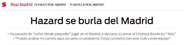 “Pase lo que pase en el futuro, seré feliz”, cerró un Eden Hazard, sobre el cual todos sabemos que se muere por jugar en el Madrid.