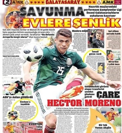 Según reseñan ampliamente los medios deportivos turcos, Moreno es una de las grandes apuestas de la zaga del equipo que dirige el histórico Fatih Terim. El tema que tendría que sortear el “Gala”, elenco en el que militó antes Gio Dos Santos, será la cláusula de salida del defensor mexicano.