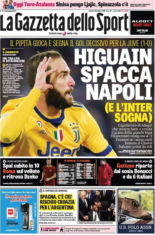En el siempre clásico del Sur ante el Norte, Juventus ayer venció 1-0 a Napoli en condición de visitante. ¿Quién marcó el único tanto del duelo? Sí, Gonzalo Higuaín.