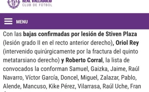 La lesión de Plaza tuvo lugar luego de un entrenamiento con las Promesas de Valladolid. Su continuidad en el equipo europeo está en duda debido a estos problemas.