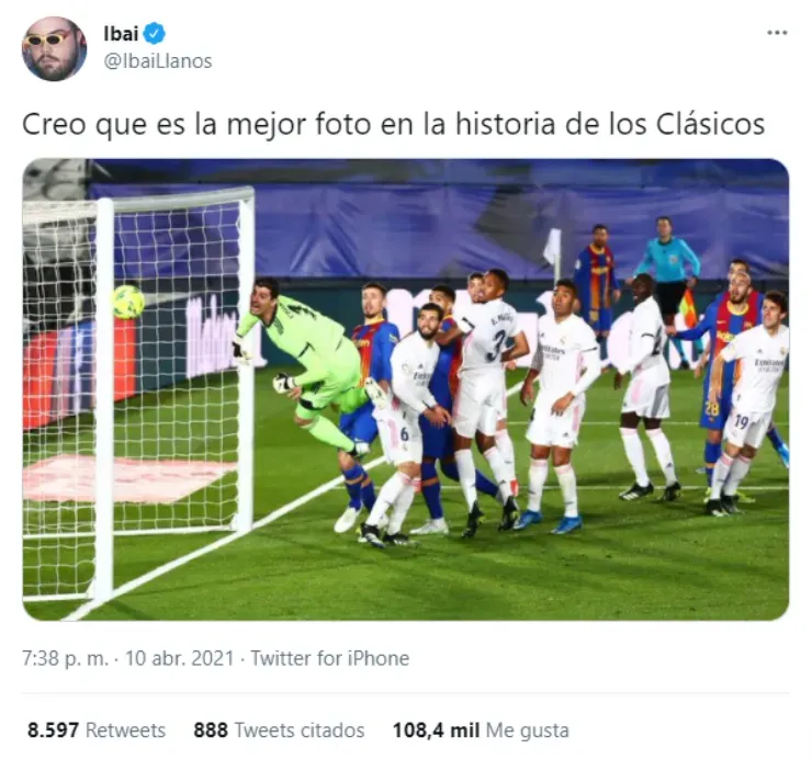 Exteriorizando su asombro y dejando en claro que quedó admirado con la obra de arte que el argentino estuvo a escasos centímetros de firmar, Ibai, deslizando que la foto en cuestión bien podría pelear por ser la mejor de la historia de los encuentros entre Real Madrid y Barcelona, escribió: “Creo que es la mejor foto en la historia de los Clásicos”.