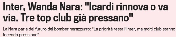 El mismo habría sido indicando a la dirigencia delneroazzurroque la prioridad del delantero es quedarse en su equipo actual, pero de no actuar ahora mismo se tendrían en cuenta ofertas de clubes importantes.