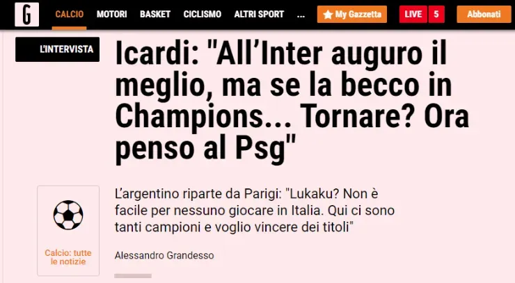 En una entrevista exclusiva llevada a cabo con Gazzetta dello Sport, Mauro, destacando que actualmente se encuentra mentalizado al 100% en hacerlo lo mejor posible en Francia, destacó: “Este año estoy en el PSG y mi objetivo es dar el máximo por esta camiseta”.