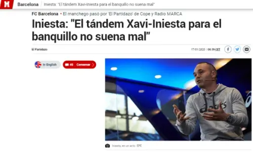 En una entrevista con Marca, Andrés Iniesta habló sobre la chance de dirigir al equipo junto a un ex-compañero. Su declaración revolucionó a los hinchas y más de uno tendrá esperanzas.