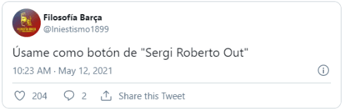 Como si todo eso fuera poco, la jornada para el conjunto culé arrancó con un comunicado médico que anunciaba una nueva lesión de un futbolista. Por unas molestias tendinosas en el recto femoral del muslo derecho, el entrenador no podrá contar con Sergi Roberto por tiempo indeterminado.
