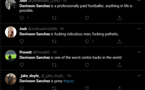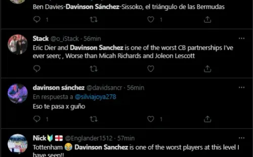 “Dávinson Sánchez es un jugador profesional remunerado, todo en la vida es posible”, “Realmente creo que soy mejor defensor que Dávinson Sánchez”, “Dávinson Sánchez es uno de los peores defensas centrales del mundo”, “Davinson Sánchez tiene que ser el peor futbolista que he visto en mi vida”, fueron algunos de los comentarios.
