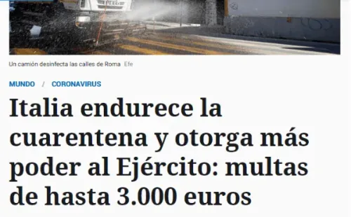 Giuseppe Conte, con el aval del Consejo de Ministros, sacará a los militares a la calle para lograr que nadie salga de sus casas. Sería algo similar a establecer un Estado de sitio momentáneo para apalear la enfermedad.
