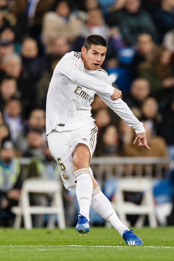 Durante lo que va de la temporada, el volante de la Selección Colombia ha venido trabajando con unos Adidas X, de color azul, tal como se ve en las imágenes de este año. Pero, este martes, salió a la cancha con unos botines negros, que se asemejan más a la línea Predator, pero no se ha hecho oficial un cambio por parte del jugador, ni de la marca que lo patrocina.