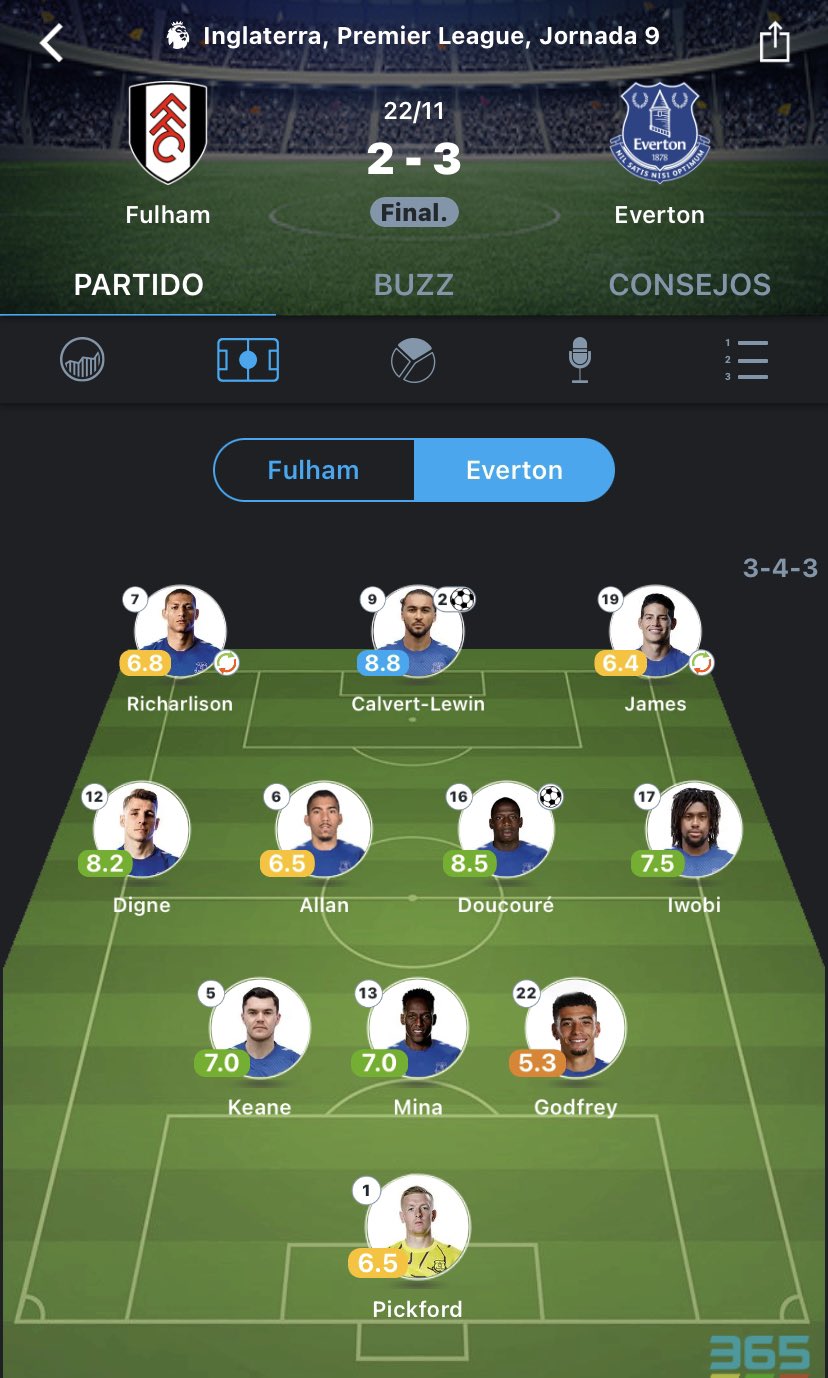 Este domingo, Everton volvió a la victoria en la Premier League, tras tres derrotas consecutivas que lo habían relegado en la tabla de posiciones, luego de vencer 2-3 al Fulham en condición de visitante y llegar a 16 puntos en la tabla de posiciones.