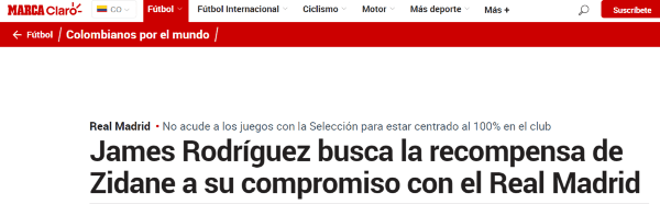 El diario Marca, este jueves, dice: “Queda por ver cuáles son los planes del galo (Zidane), acusado en los últimos días deinmovilista en sus decisionestras el pinchazo ante el Brujas. Deberá decidir si vuelve a confiar en el talento de James o sigue en la misma línea apostando por con Kroos, Modric y Casemiro como en el pasado”.