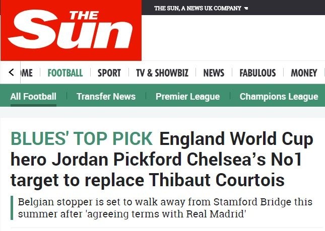 Según detalló el diario The Sun, ante la necesidad de buscar un arquero por la posible salida deThibaut Courtois al Real Madrid, el Chelsea se habría decantado por Pickford y estaría dispuesto a ofrecer lo necesario para hacerse con sus servicios.