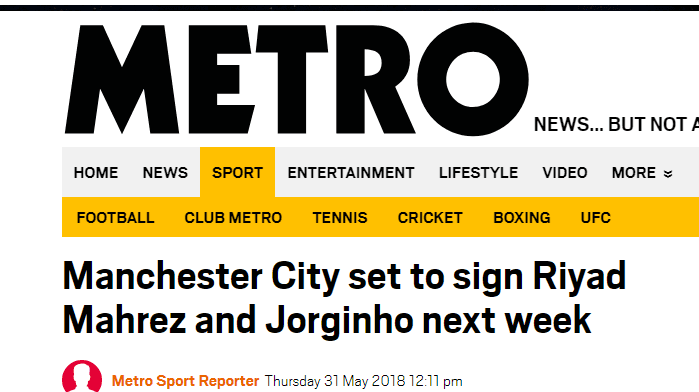 Según informaMetro, losCitizensterminarán de cerrar la próxima semana tanto este fichaje como el de Ryan Mahrez, la estrella del Leicester inglés.