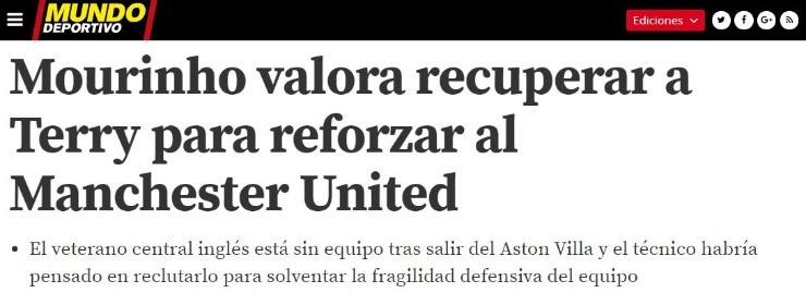 Según detalló Mundo Deportivo, la alternativa de contratar al legendario John Terrycomenzó a tomar peso en Inglaterra. El defensor quedó libre luego de partir del Aston Vilay no encontrar club en el actual mercado.