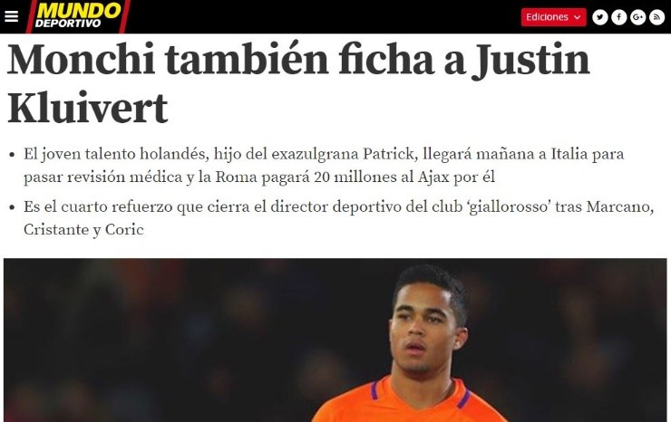 El mercado de fichajes continúa moviéndose y repercutiendo en diferentes partes del mundo. En esta oportunidad, el hijo del legendario jugador de HolandaPatrickKluivertdeja el Ajax para pasar a formar parte de la Roma de Italia.