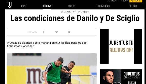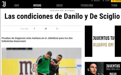 Este miércoles, se informó que tanto Danilo como Mattia De Sciglio no estarán disponibles para Sarri hasta mediados de octubre.