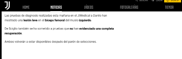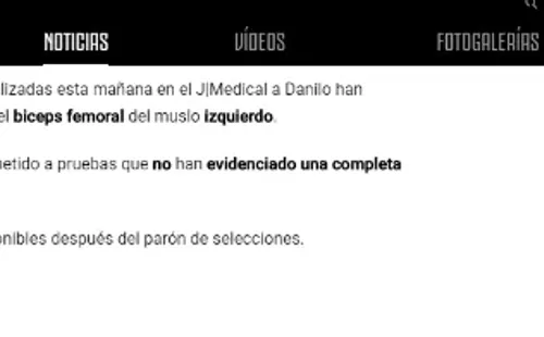 “Los exámenes médicos realizados esta mañana en el J Medical aDanilo han evidenciado una lesión leve en el músculo bíceps femoral del muslo izquierdo”, reza el parte médico.