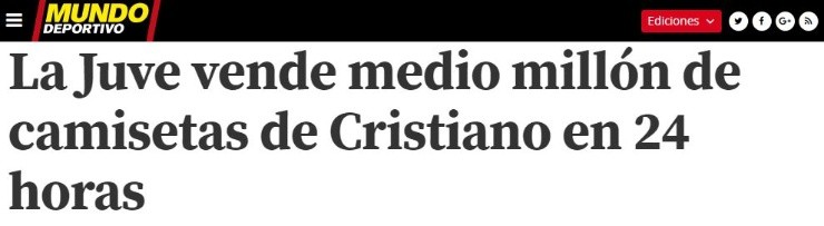En total se habrían vendido alrededor de520.000 camisetas. Todas con el caracterísitico número 7 del portugués en el dorsal.