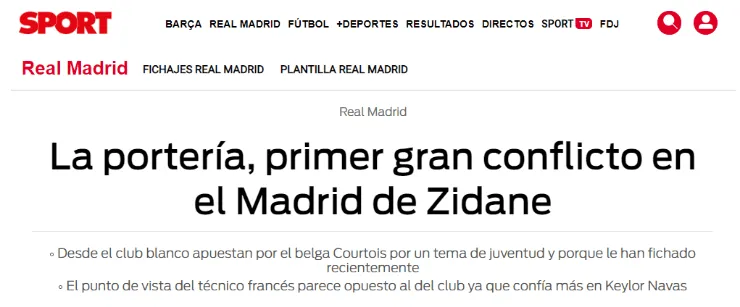 Aparentemente, fruto de su corta edad e inversión realizada por él hace muy poco, la directiva se encuentra posicionada del lado de Thibaut Courtois, arquero con el cual compite Keylor.