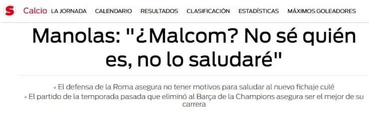 El medio en cuestión explicó que Kostas, al hablar sobre el hombre de Brasil, confesó sin problema alguno: “¿Malcom? No sé quién es, no lo conozco. No hay motivos para saludarlo, no quiso la Roma, prefirió el Barça”.