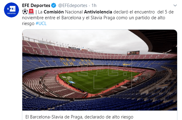 Se trata del duelo ante Slavia Praga, por la cuarta jornada de la fase de grupos de la Champions League, previsto para el martes 5 de noviembre, también en el Camp Nou.