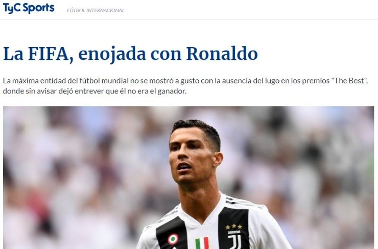 Según detalló el portal TyC Sports, la actitud tomada por el artillero de La VecchiaSignorano habría sido diluida de forma positiva por parte de la FIFA.