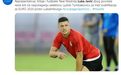 Es que la Federación de Fútbol de Serbia comunicó que Luka Jovic se perderá el duelo ante Luxemburgo por presentar molestias físicas.