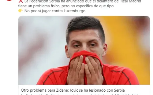 Jovic ingresó recién en el minuto 87 del duelo que terminó con derrota 4-2 ante los lusos y en ese breve periodo de tiempo se habría provocado su recaída.
