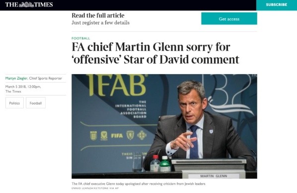 “No se puede -y no queremos- que en las vestimentas del fútbol haya símbolos políticos”, concluyó Glenn, en declaraciones que publicó The Times of London.