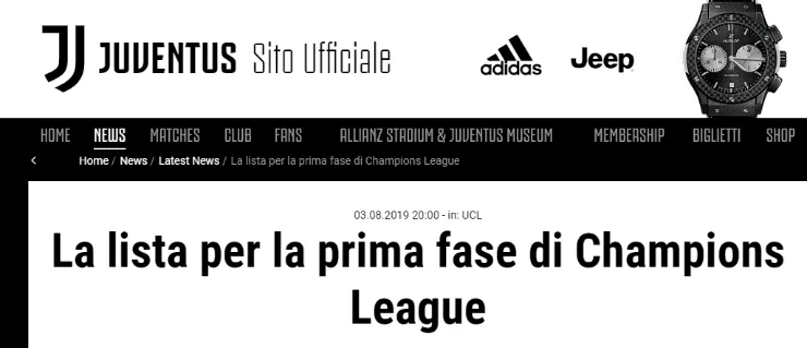 Habiéndose sorteado hace pocos días los correspondientes grupos de la Champions League, la Juventus presentó este martes por la tarde la lista de deportistas que defenderán la camiseta de la institución en dicha instancia.