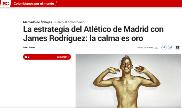 De hecho, en el diario Marca, de España, aseguran que el Atlético de Madrid tiene una estrategia clara para terminar fichando al colombiano y es la paciencia. “La calma y la sangre fría para no dejarse llevar por la precipitación pueden acabar siendo los factores decisivos para que la Diección Deportiva acabe poniendo la guinda a la plantillacon la contratación de James,el gran deseado”.