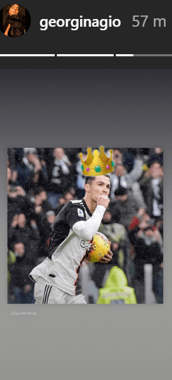 “Día de partido”, escribió Georgina y deseó buena suerte a los de Turín minutos antes que inciara el duelo.