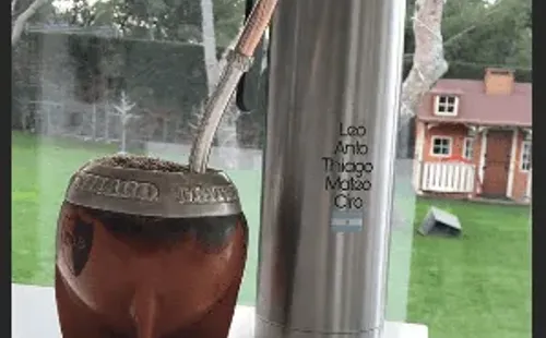 En la misma se pueden ver un termo y un mate, fieles acompañantes de cualquier sudamericano para pasar el rato.