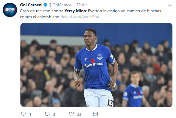 Un comunicado del club aclaró: “Everton Football Club está al tanto del video publicado en las redes sociales por un club de aficionadosno afiliados. Estamos en contacto con Kick It Out y estamos trabajando con ellos para investigar el asunto. Everton tiene una tolerancia cero respecto a cualquier forma de racismo “.