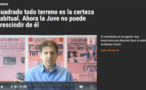 Hay una realidad que aqueja a la Juventus y tiene que ver con las lesiones.De Sciglio, Douglas Costa yDaniloson baja y el único que pudo suplir esas ausencia fue Juan Guillermo Cuadrado. Así lo explica el periodista italiano,Matteo Pierelli.