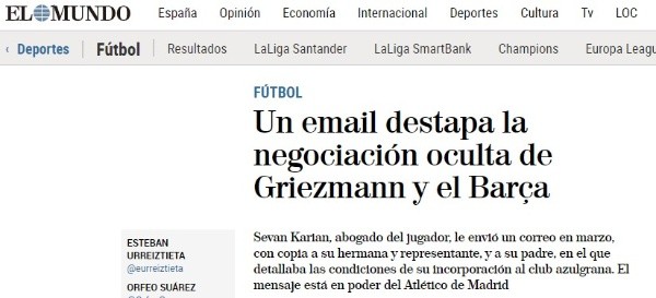 Este correo tendría todos los detalles de la operación, y fue enviado al abogado del delantero, a él, a su hermana y al padre. El comisionista, que quedó fuera de la negociación finalmente, habría sido quien develó todo esto.