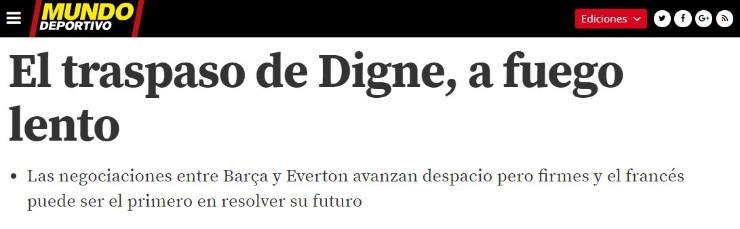 Según detalló Mundo Deportivo, el elenco Blaugranatendría todo encaminado con el Everton para traspasar al jugador. Vale mencionar que las negociaciones, por el momento, avanzan a paso lento pero firme.