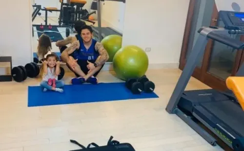 En la misma se puede apreciar al exjugador de Peñarol y Boca Juniors en plena sesión de entrenamiento y con la compañía ideal.