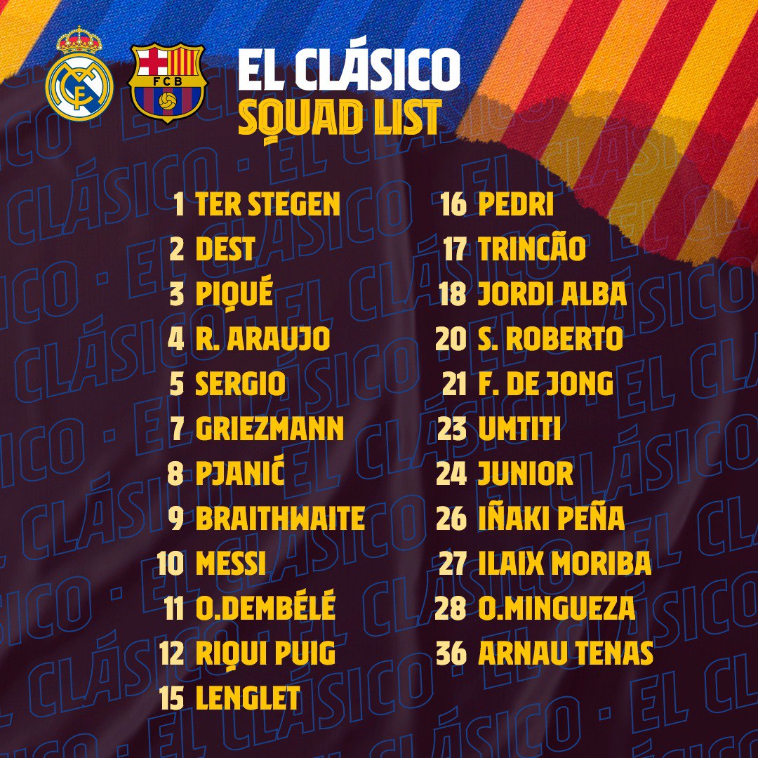 Este viernes, tantoBarcelonacomoReal Madridpresentaron sus listas de convocados en las redes sociales a un día de jugarse El Clásico, que será un duelo clave en el Alfredo di Stéfano por la Jornada 30 de la Liga de España. El ganador será claro favorito a disputarle el título al Atlético Madrid, el líder.