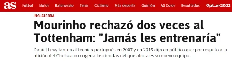 Sin embargo, el DT portugués cuenta con dos ‘antecedes‘ en los cuales desveló que rechazó en varias oportunidades hacerse cargo del Tottenham.