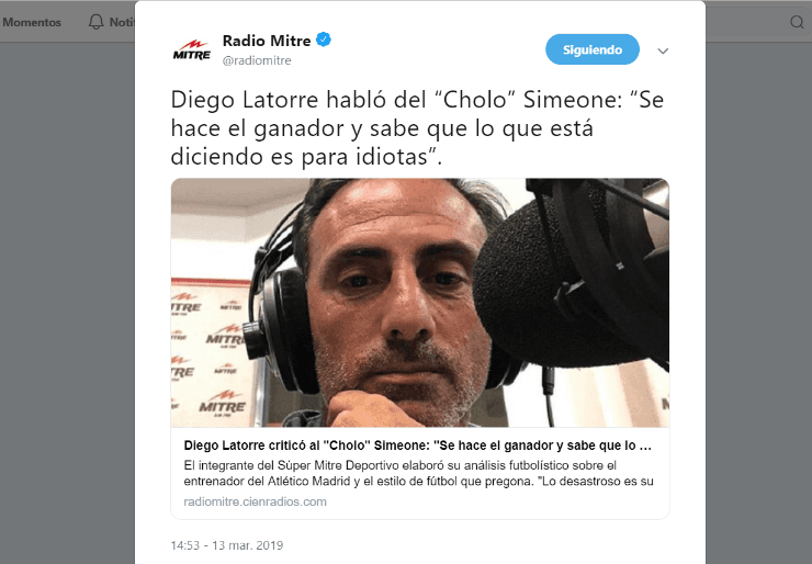 “Los que no aceptan otras maneras de juego son los ‘Cholitos’ Simeone. Es desastroso su discurso, cuando dice las estupideces como que prefiere ganar sin jugar o que no le importa la posesión. Cuando tiene que agarrar la pelotita, no lo hace. Hay que desterrar esas cosas del fútbol, no voy a cuestionar como juega pero si las estupideces que dice para los bobos. Después perdés ganando 2 a 0 y quedás como un estúpido. El tipo sabe que lo que dice es falso y que se hace el ganador, que lo que dice es para idiotas o infradotados y hay gente que le compra. Después pierde sin atenuante y no sabe que decir. Dice ‘ah, la contundencia’ y antes vendió la fórmula del éxito. Es un camino que sirve solo para cuando ganas”.¿Estás de acuerdo?