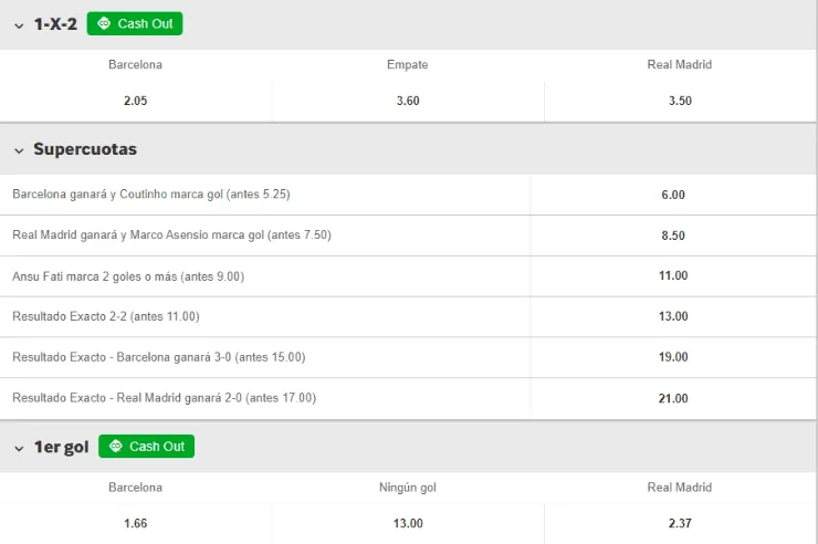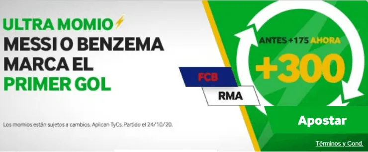 Además, puedes jugar la promoción especial que tiene Betway para este partido: Aprovecha el ULTRA MOMIO si crees que Messi o Benzema anotarán el primer gol del Clásico. Si te la juegas por uno de ellos, paga +300 lo que juegues.