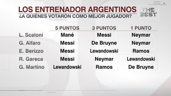 ¿De verdad el DT de laAlbicelesteno quiso poner al Diez primero? La explicación es que los seleccionadores no pueden votar en primer lugar a jugadores de su propio país, es decir, Scaloni no podía darle cinco puntos (máxima calficación) a Messi.