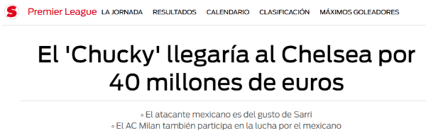 De darse la transferencia previamente mencionada, El Chucky pasaría a tener su primera experiencia en la PremierLeague, y en consecuencia en una liga de alta competitividad europea.