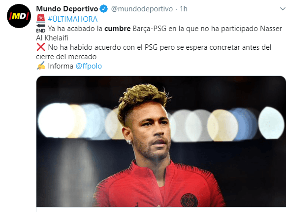 En la cumbre’se encontraban, por parte del FC Barcelona, el director deportivo Eric Abidal, el directivo del área de fútbol Javier Bordas, el asesor brasileño André Cury y el CEO del club blaugrana, Óscar Grau, mientras que por parte del PSG estaban el director deportivo Leonardo y el asesor del presidente Al Khelaifi Djamel Bouras.