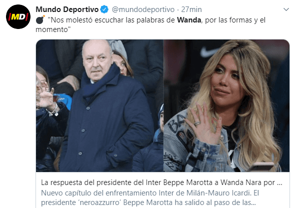 Es allí que el presidente entiende que, por ser también su agente, las palabras de Wanda Nara no han ayudado en nada a la concreción de los deseos del club. “Nos molestó escuchar las palabras de Wanda, por las formas y el momento.Llegaremos hasta el final y nadie en el club puede alterar una decisión tomada y aceptada por todos”, agregó Marotta sobre la necesidad de vender a Icardi.